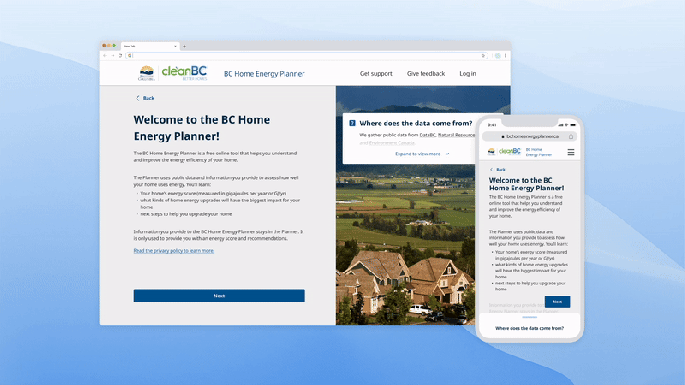 The provincial tool uses public data to assess how well a home uses energy. Users are first onboarded to the provincial tool by matching their address with the homeowners personal details on record.