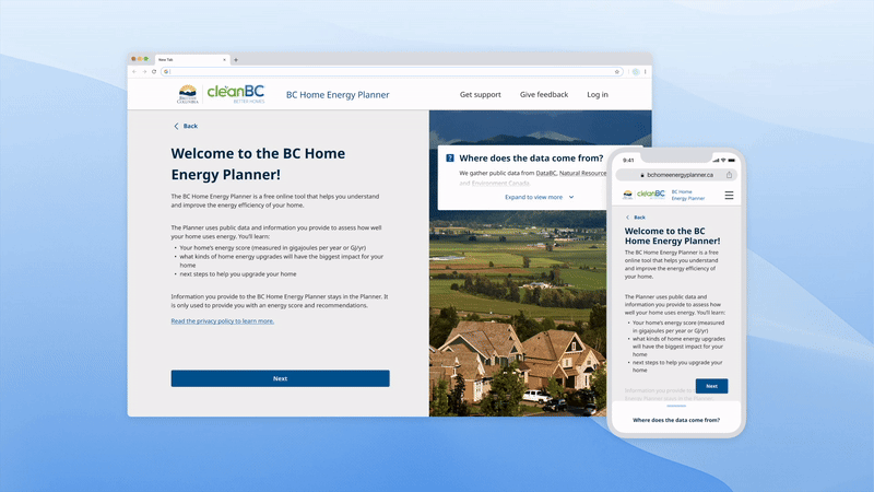 I had the opportunity to lead the design of CleanBC’s BC Home Energy Planner — a new service developed by the Province of British Columbia to help homeowners across B.C. explore energy-efficient home upgrades and access available rebates, supporting them in reducing carbon emissions and improving overall home performance.