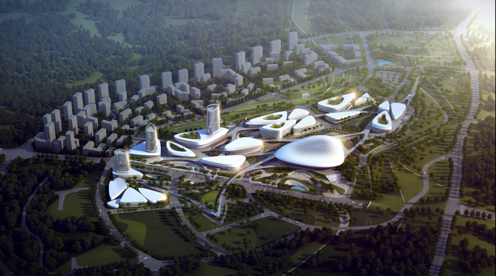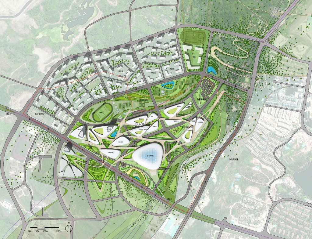 Chongqing NBA Sports Center Daytime aerial view Aerial view at dusk Perspective rendering Perspective The Plan Stereoscopic traffic analysis