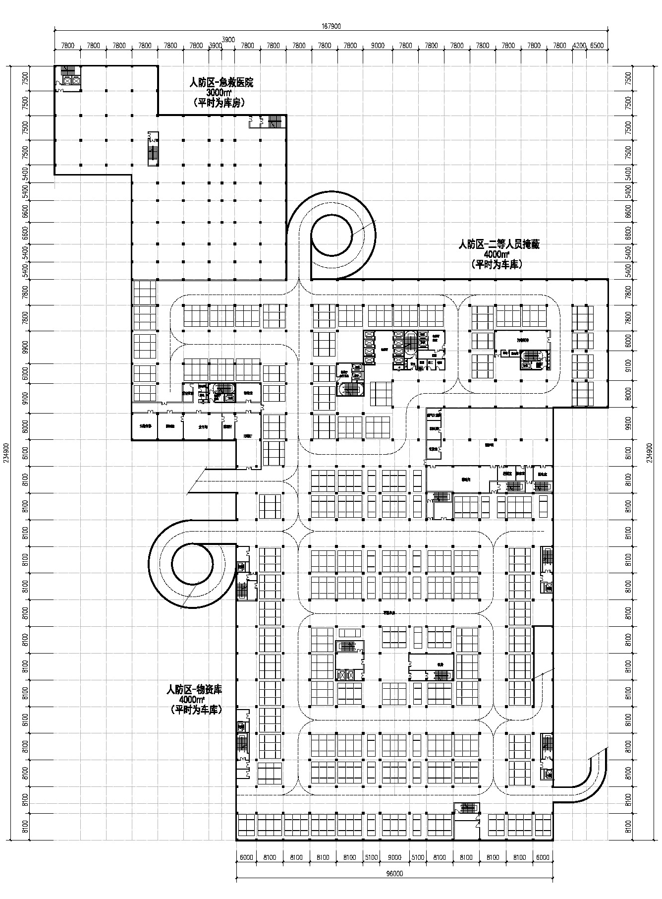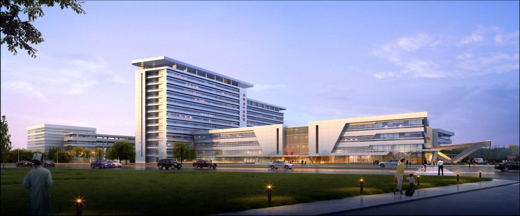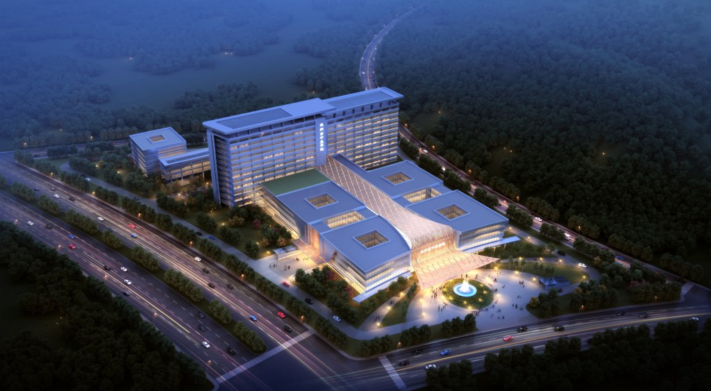 Lanzhou Traditional Chinese Medicine Hospital Bird’s-Eye View-Night South facade West facade South Entrance Plaza B2 B1 Underground fire compartment 1F 2F 3F 4F