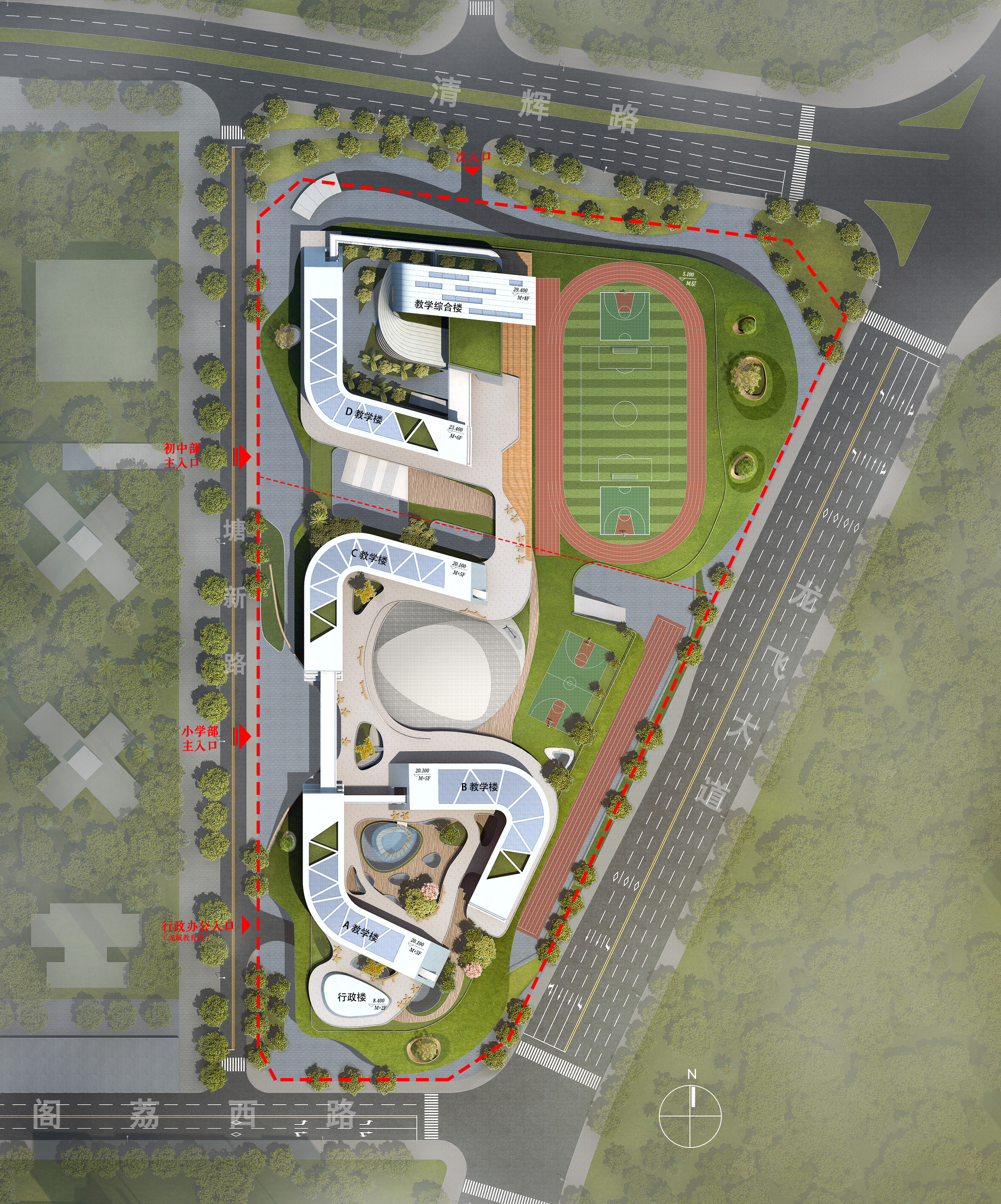 Shenzhen Longfei School The Plan Aerial View Rendering Rendering Rendering Rendering Rendering B1 plan M floor plan 1F plan 2F plan 3F plan 4F plan